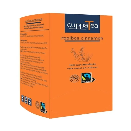 Samengesteld uit rooibos (96,5%), natuurlijk kaneelaroma en 0,5% kaneel